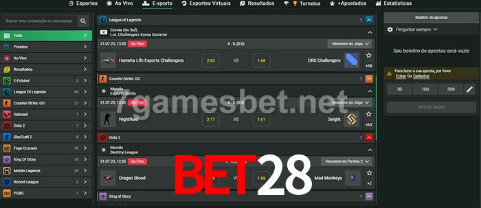 O bet28 oferece uma grande seleção de opções de apostas em e-sports com probabilidades competitivas